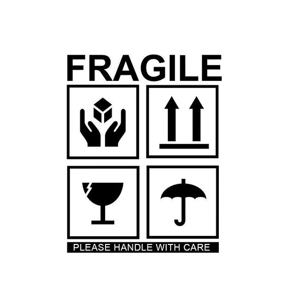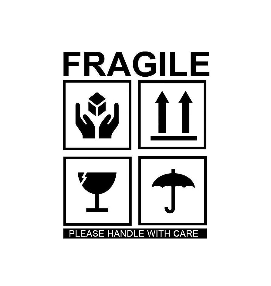 Mit diesem Versandetikett werden Versand- und Packstücke, die empfindlich vor Erschütterungen, Nässe, Schräglagen und ähnliches beinhalten, markiert. Die Kennzeichnung informiert über empfindlichen Inhalt und verhindert entsprechend Beschädigungen am Paket und Inhalt.