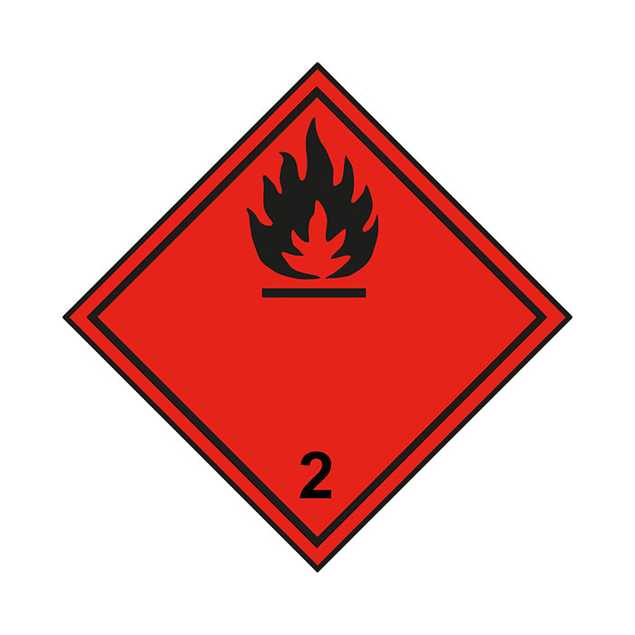 Versandstücke von denen aufgrund ihrer Eigenschaft beim Transport eine Gefahr für die allgemeine Sicherheit ausgeht, werden mit Gefahrgutettiketten gekennzeichnet. Entzündbare Gase müssen beim Transport oder bei der Lagerung mit diesem Gefahrenzettel gekennzeichnet werden.