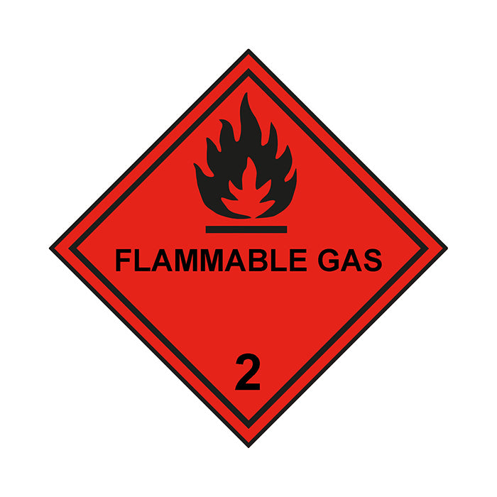 Versandstücke von denen aufgrund ihrer Eigenschaft beim Transport eine Gefahr für die allgemeine Sicherheit ausgeht, werden mit Gefahrgutettiketten gekennzeichnet. Entzündbare Gase müssen beim Transport oder bei der Lagerung mit diesem Gefahrenzettel gekennzeichnet werden.