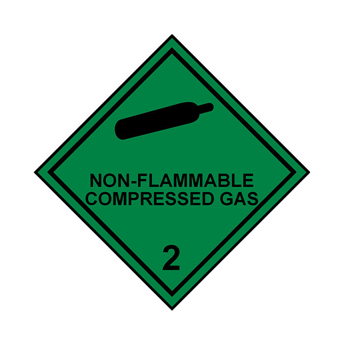 Gefahrzettel, Gefahrgutaufkleber Klasse 2.2 Nicht entzündbare, nicht giftige Gase mit Zusatztext Non-Flammable Compressed Gas, Gasflasche Schwarz mit durchgehender Kontrastlinie