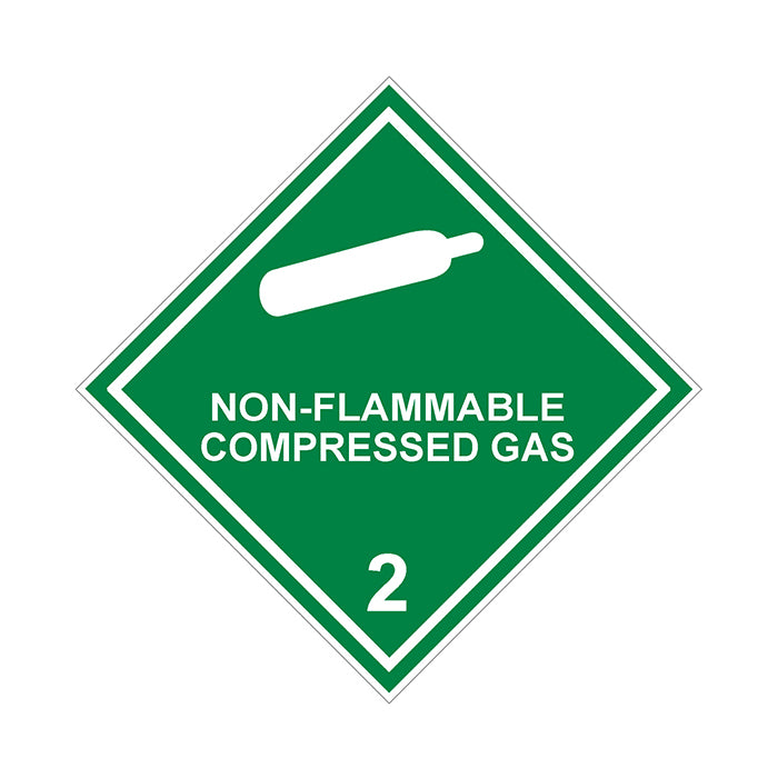 Gefahrzettel, Gefahrgutaufkleber Klasse 2.2 Nicht entzündbare, nicht giftige Gase mit Zusatztext Non-Flammable-Compressed-Gas, Gasflasche Weiß mit durchgehender Kontrastlinie
