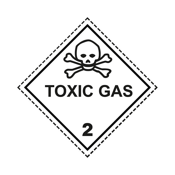 Mit Gefahrgutetiketten werden Versandstücke gekennzeichnet, von denen aufgrund Ihrer Eigenschaften beim Transport eine Gefahr für die allgemeine Sicherheit ausgeht. Giftige Gase müssen mit diesem Gefahrenzettel etikettiert sein..
