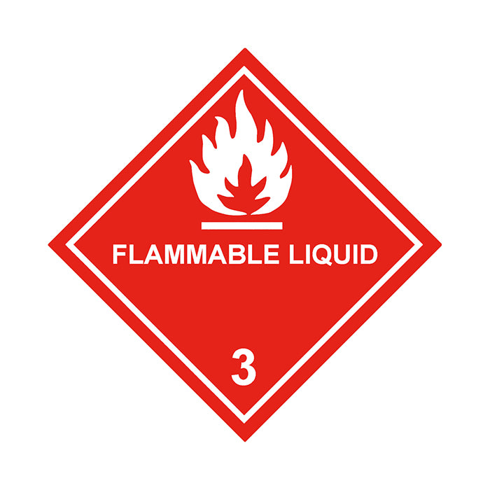 Gefahrzettel, Gefahrgutaufkleber Klasse 3 Entzündbare, flüssige Stoffe mit Zusatztext Flammable Liquid, Flamme Weiß