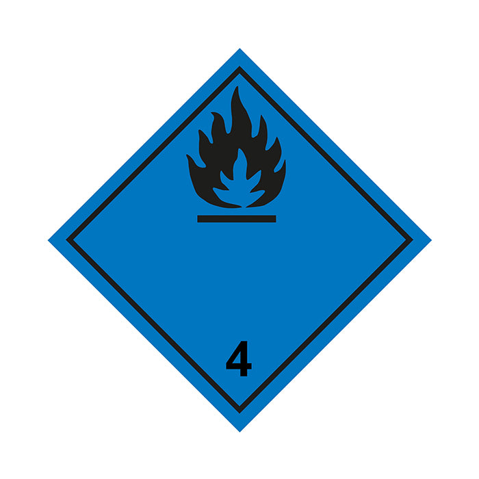 Versandstücke von denen aufgrund ihrer Eigenschaft beim Transport eine Gefahr für die allgemeine Sicherheit ausgeht, werden mit Gefahrgutettiketten gekennzeichnet. Stoffe die mit Wasser entzündliche Gase bilden, müssen beim Transport oder bei der Lagerung mit diesem Gefahrenzettel gekennzeichnet werden.