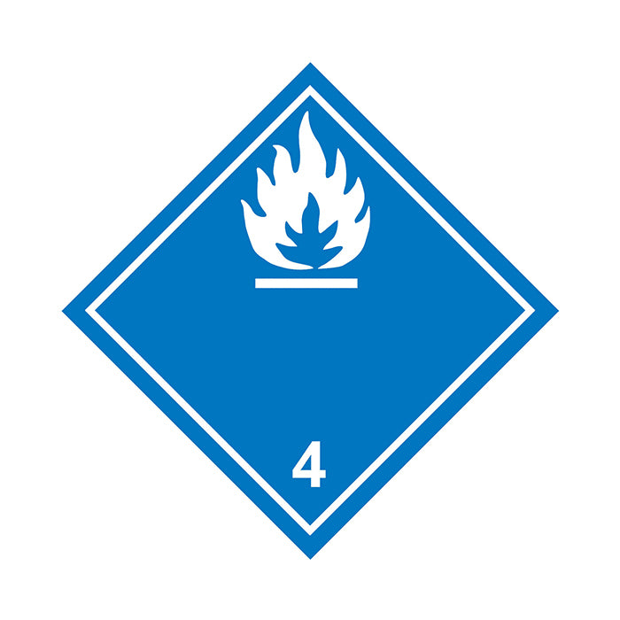 Gefahrzettel, Gefahrgutaufkleber Klasse 4.3 Stoffe, die mit Wasser entzündliche Gase bilden, Flamme Weiß