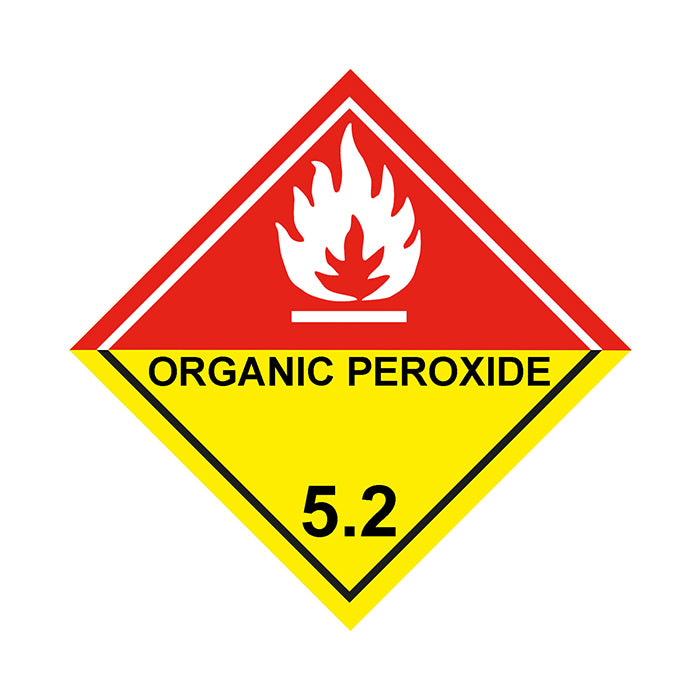 Versandstücke von denen aufgrund ihrer Eigenschaft beim Transport eine Gefahr für die allgemeine Sicherheit ausgeht, werden mit Gefahrgutettiketten gekennzeichnet. Organische Peroxide Stoffe, müssen beim Transport oder bei der Lagerung mit diesem Gefahrenzettel gekennzeichnet werden.