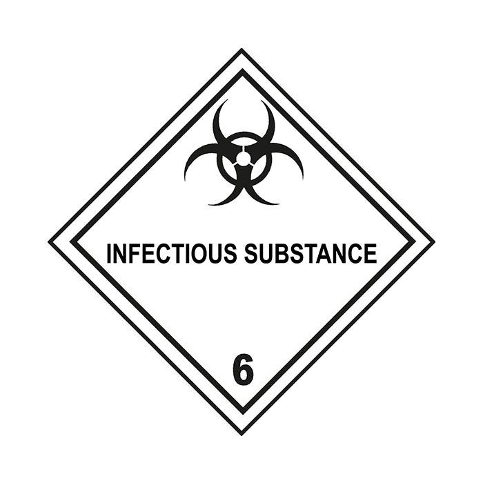 - Gefahrgutkennzeichnung ansteckungsgefährlich mit durchgehender Kontrastlinie Zusatztext INFECTIOUS SUBSTANCE