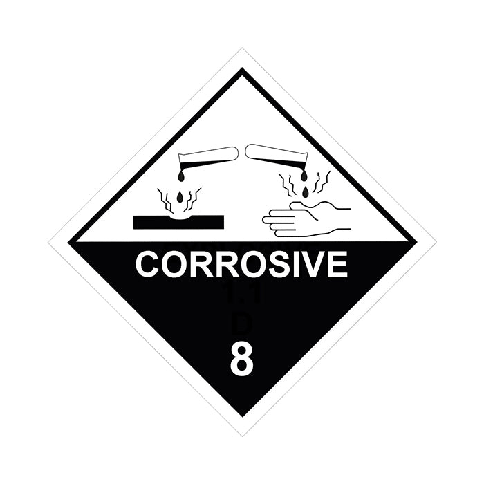 Gefahrzettel, Gefahrgutaufkleber Klasse 8 Ätzende Stoffe mit Zusatztext Corrosive