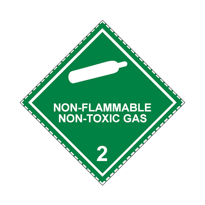 - Gefahrgutkennzeichnung nicht entzündlich, nicht giftig mit gestrichelter Kontrastlinie