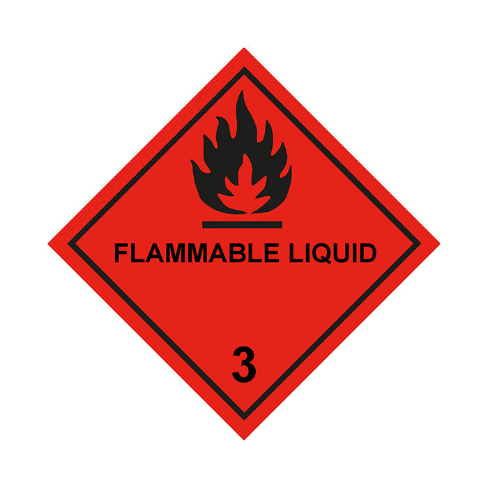 Gefahrzettel, Gefahrgutaufkleber Klasse 3 Entzündbare, flüssige Stoffe mit Zusatztext Flammable Liquid, Flamme Schwarz