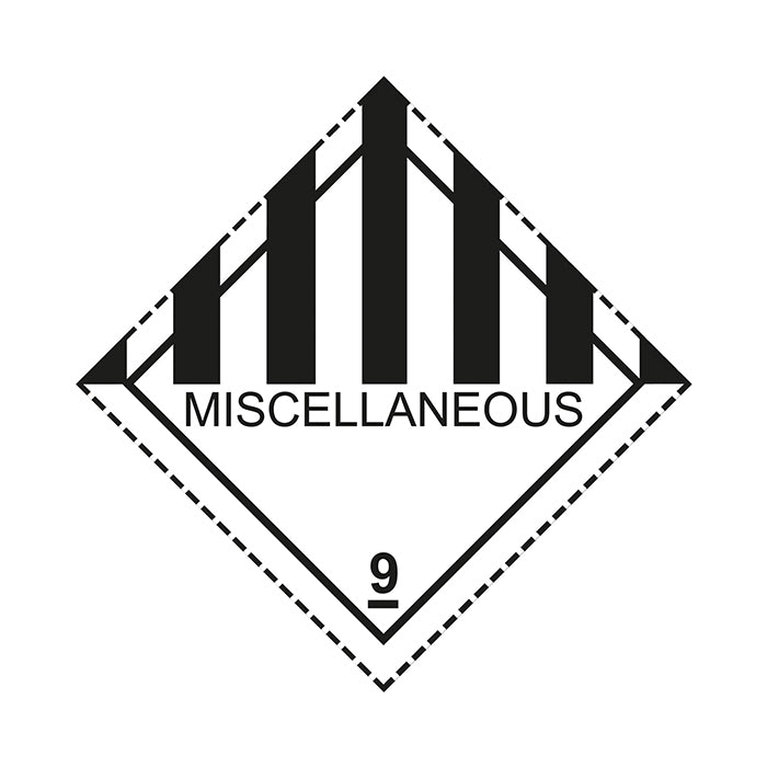 - Gefahrgutkennzeichnung verschiedene gefährliche Stoffe und Gegenstände mit mit gestrichelter Kontrastlinie mit Zusatztext MISCELLANEOUS
